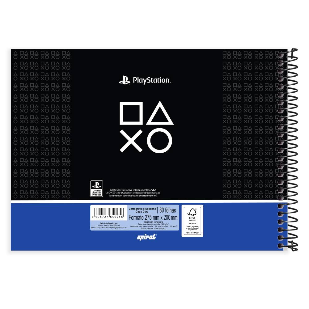 Caderno de cartografia e desenho, Capa dura, 80 folhas, Playstation, 2640956, Spiral Ps - PT 1 UN