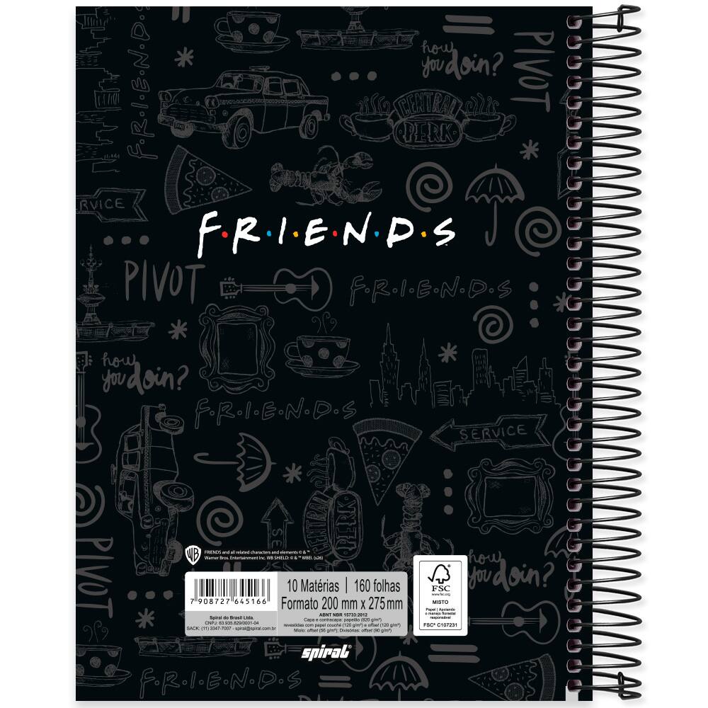 Com 160 folhas de alta qualidade, você terá espaço de sobra para desenvolver suas ideias, fazer anotações importantes ou até mesmo desenhar. A capa dura proporciona resistência e durabilidade, garantindo que seu caderno aguente o dia a dia da rotina universitária, sem perder o charme que só o universo de Friends pode oferecer.