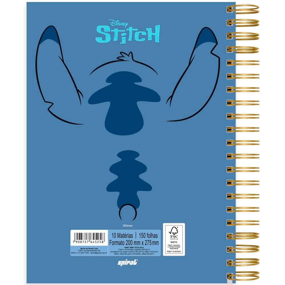 Caderno Universitário Capa Dura Premium, 10 x 1, 150 folhas, Stitch, 2645258, Spiral Ds - PT 1 UN