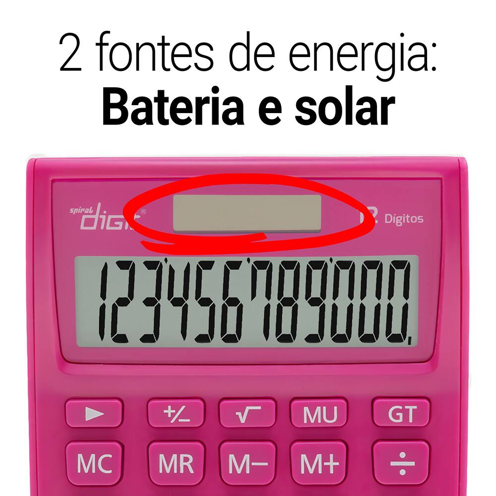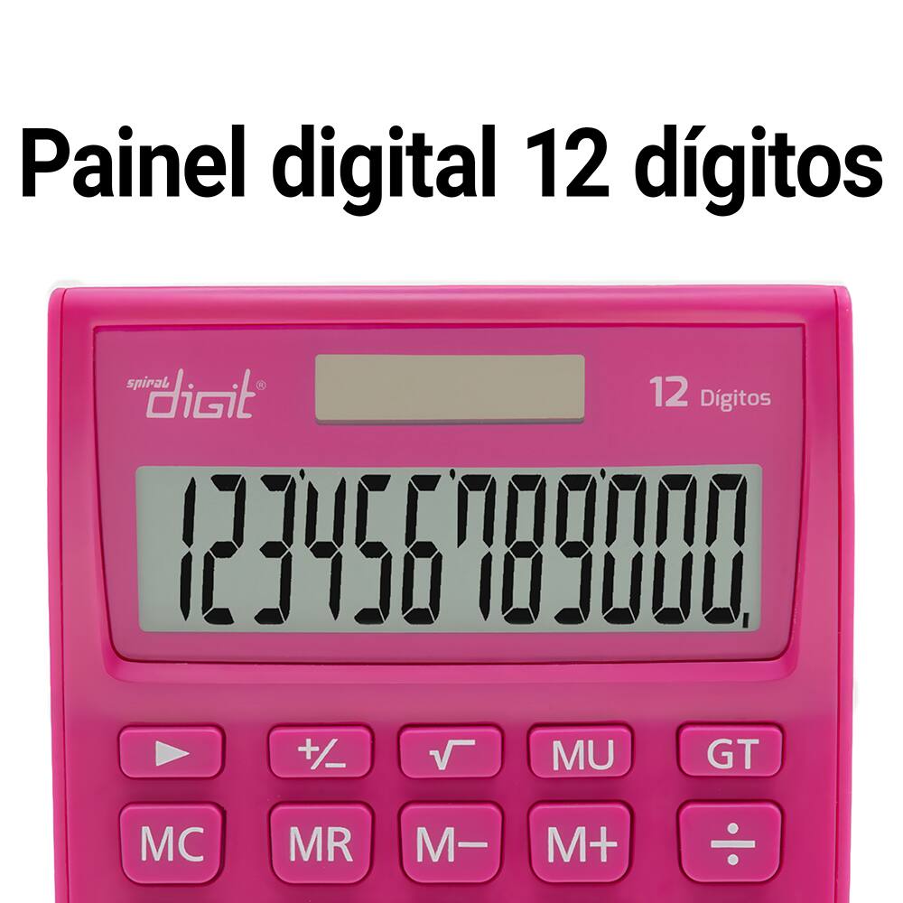 Calculadora de Mesa (Bateria/Energia Solar), 12 dígitos, Rosa, 1238, Spiral Digit PT 1 UN