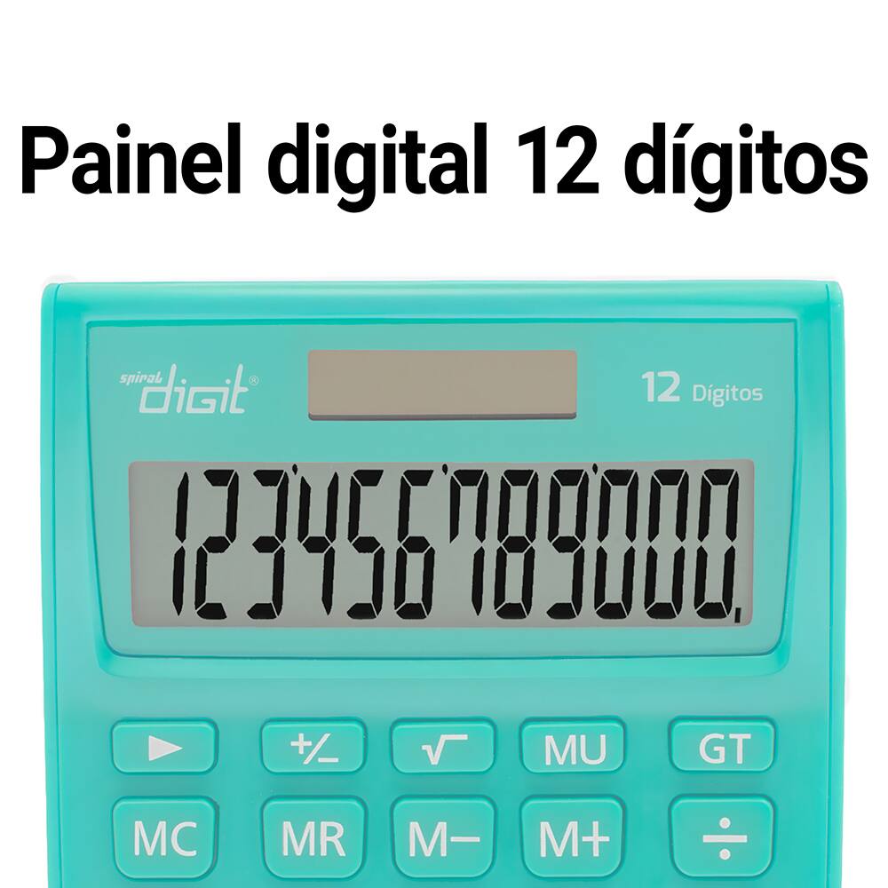 Calculadora de Mesa (Bateria/Energia Solar), 12 dígitos, Verde, 1238, Spiral Digit PT 1 UN