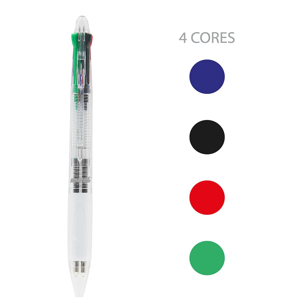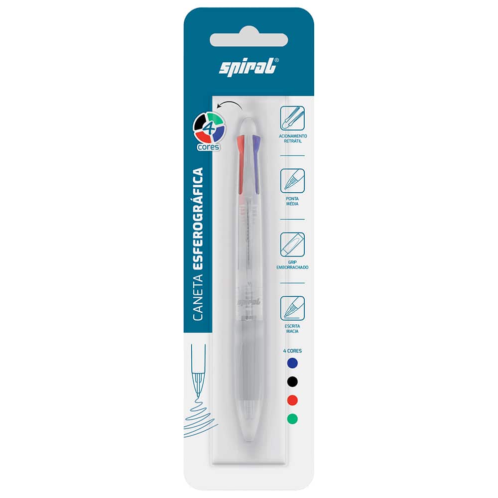 Caneta esferográfica retrátil, 4 cores, ponta de 0,7mm, Transparente, AA99-3K, Spiral BT 1 UN