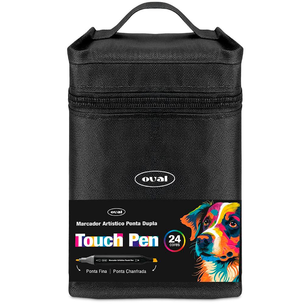 Caneta Marcadora Artística Touch Pen 24 Cores Ponta Dupla (Chanfrada e Fina) com Estojo com Zíper, Oval - BT 24 UN