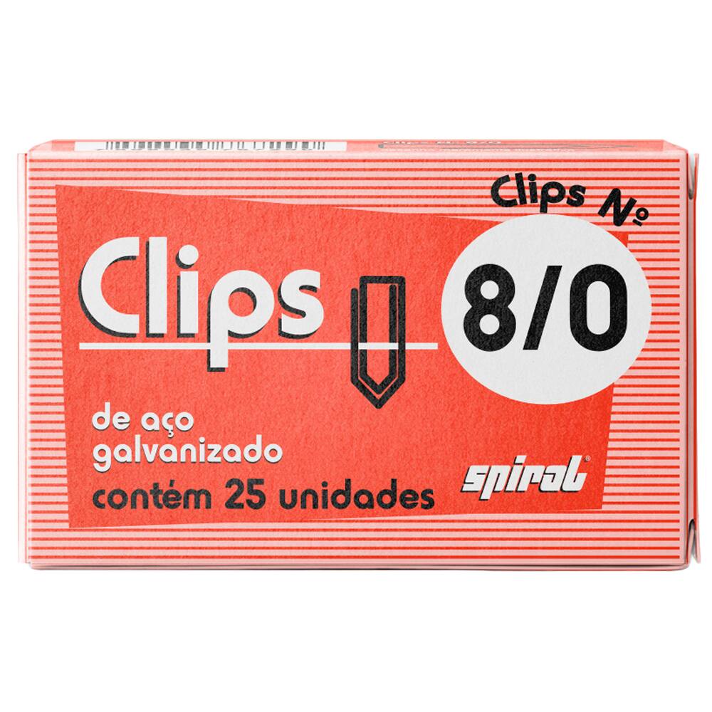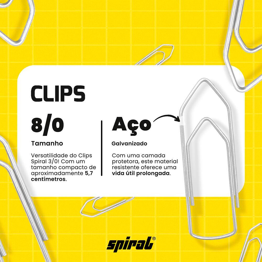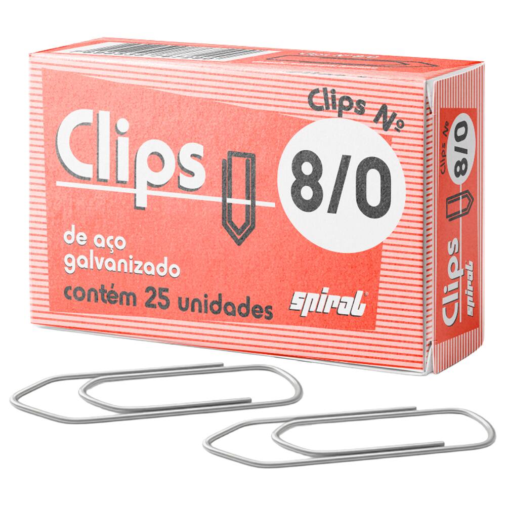 Clips número 8/0 galvanizado, Caixa com 25 unidades, Spiral - PT 1 UN